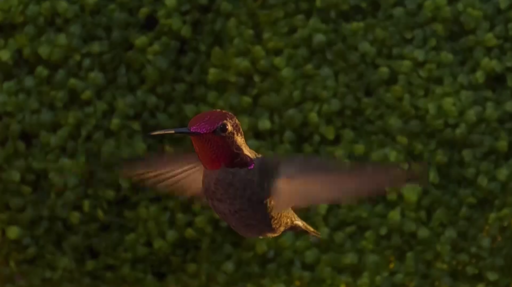 Ana’s Hummingbird performs hovering skills on the front porch. Both of these videos were captured in slow motion using ribcaged GoPros in a homemade beamsplitter.